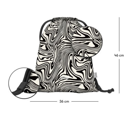 • Sáček na obuv či jiné drobnosti pro vaše volnočasové aktivity. • Sáček je vyroben z pevného omyvatelného materiálu. • Zdrhování pomocí pevných tkanic, které zároveň umožňují nošení na zádech.