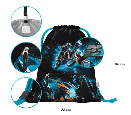 • Sáček je vybaven karabinkou díky, které ho lze připevnit na aktovku.