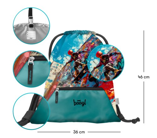 • Praktický sáček s kapsou na zip je vhodný nejen na přezůvky do školy, ale také na cesty, do města, na sportovní či jiné volnočasové aktivity.