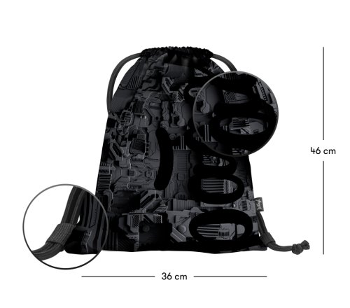 • Sáček na obuv či jiné drobnosti pro vaše volnočasové aktivity. • Sáček je vyroben z pevného omyvatelného materiálu. • Zdrhování pomocí pevných tkanic, které zároveň umožňují nošení na zádech.
