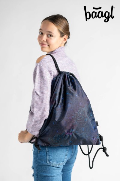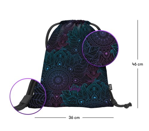 • Sáček na obuv či jiné drobnosti pro vaše volnočasové aktivity. • Sáček je vyroben z pevného omyvatelného materiálu. • Zdrhování pomocí pevných tkanic, které zároveň umožňují nošení na zádech.