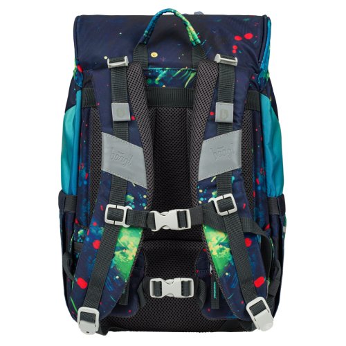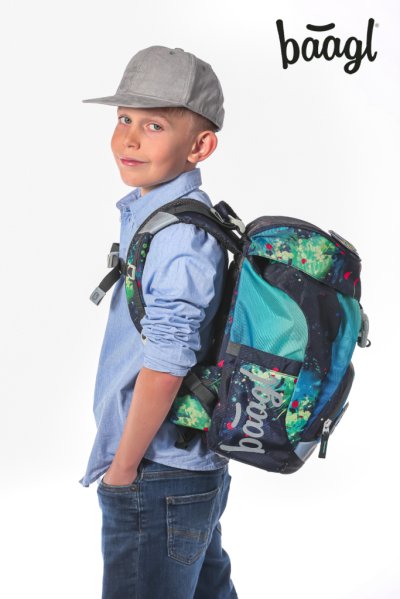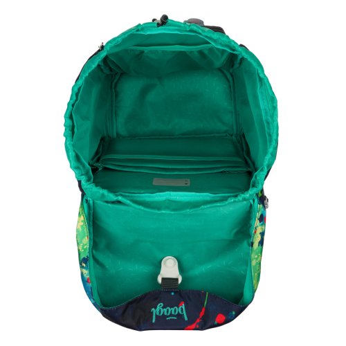 • Jednokomorové vnitřní uspořádání s kapsou a gumičkou pro uchycení desek na zádové straně slouží ke snadné organizaci všech školních pomůcek.