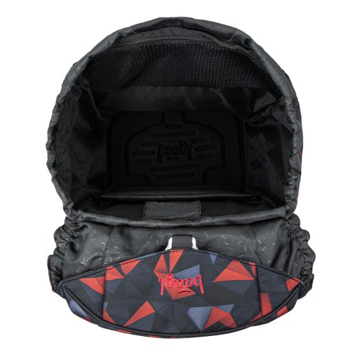• Vnitřní prostor nabízí hlavní komoru s přehledným organizérem a lehké plastové desky pro ochranu sešitů, které kopírují tvar zadní kapsy.