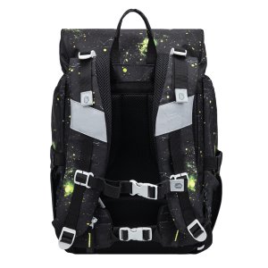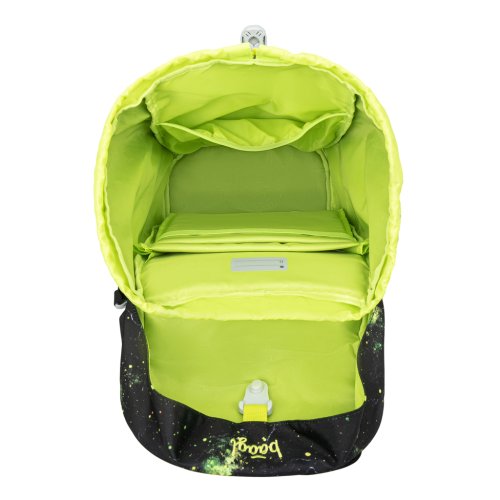 • Jednokomorové vnitřní uspořádání s kapsou a gumičkou pro uchycení desek na zádové straně slouží ke snadné organizaci všech školních pomůcek.