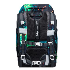 • Ergonomicky tvarovaná záda doplňují plně nastavitelné ramenní popruhy s prodyšným polstrováním, odnímatelný bederní pás a hrudní popruh, které zaručují maximální komfort, stabilitu a správné rozložení zátěže na dětských zádech.