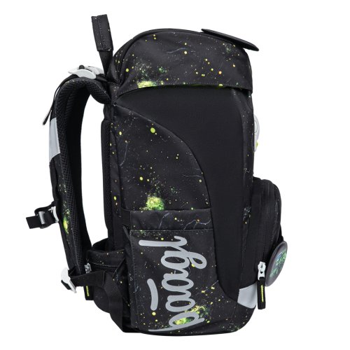 • Jednokomorové vnitřní uspořádání s kapsou a gumičkou pro uchycení desek na zádové straně slouží ke snadné organizaci všech školních pomůcek.