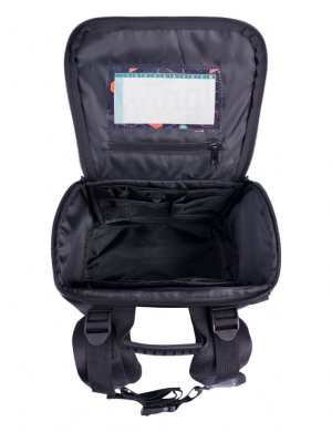 • Uvnitř aktovky je průhledná kapsa s rozvrhem a vnitřní organizér umožňující rovnoměrné rozložení hmotnosti, doplněný gumičkou pro fixaci.