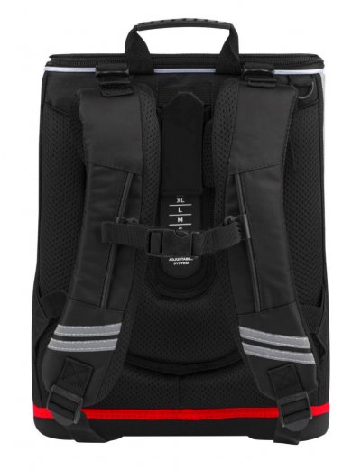 • Ergonomická školní aktovka s vyztuženým tělem, vnitřním organizérem a třemi oddělenými kapsami.
