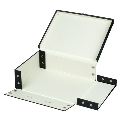 • Skládací kufřík z pevného laminovaného papíru s okovanými rohy.