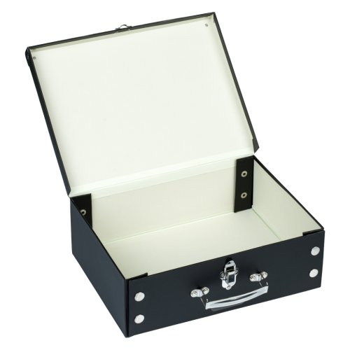 • Skládací kufřík z pevného laminovaného papíru s okovanými rohy. • Unikátní provedení s patentky, díky nimž se dají vždy znovu složit a rozložit. • Opatřené kovovým uchem a uzavíratelné na klasickou …