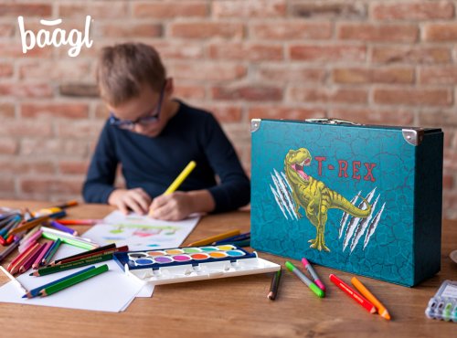 • Skládací kufřík z pevného laminovaného papíru s okovanými rohy.