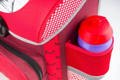 • Na klopě aktovky naleznete praktický elastický úchyt na penál, který vždy zajistí rychlý přístup k psacím potřebám každého školáka.
