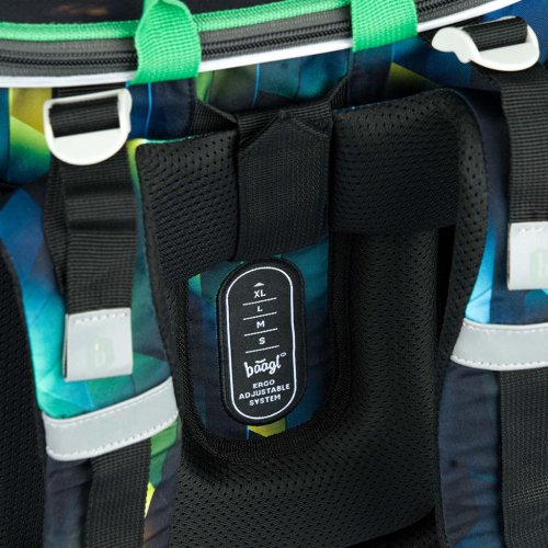 • Uvnitř aktovky je průhledná kapsa na rozvrh a vnitřní organizér umožňující rovnoměrné rozložení hmotnosti, doplněný gumičkou pro fixaci.