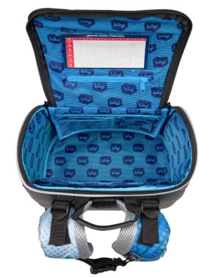 • Uvnitř aktovky je průhledná kapsa s rozvrhem a vnitřní organizér umožňující rovnoměrné rozložení hmotnosti, doplněný gumičkou pro fixaci.