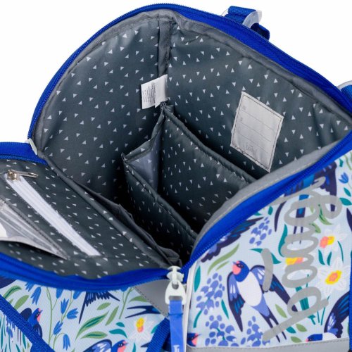 • Uvnitř aktovky je průhledná kapsa s rozvrhem a vnitřní organizér umožňující rovnoměrné rozložení hmotnosti, doplněný gumičkou pro fixaci.