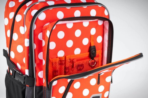 • Přední komora batohu obsahuje praktický organizér a také poutko s karabinou na zavěšení klíčů. Tuto karabinu je možné odepnout a používat samostatně.