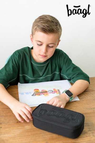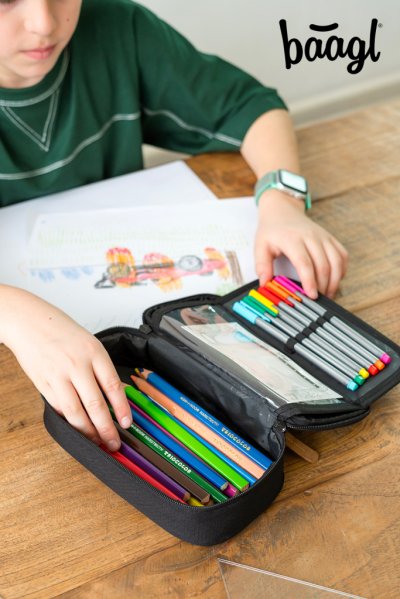 • Pevný školní penál s výklopnou vnitřní přepážkou.