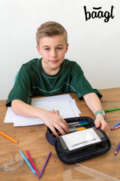 • Pevný školní penál s výklopnou vnitřní přepážkou.