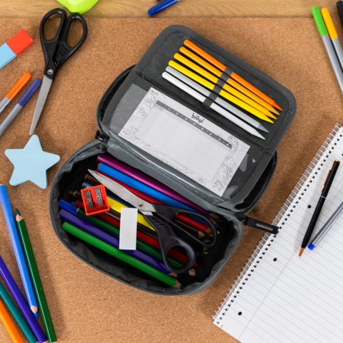 • Kompaktní penál na zip s prostornou hlavní komorou a dvojitou výklopnou chlopní nabízí dostatek prostoru pro psací potřeby i drobnosti.
