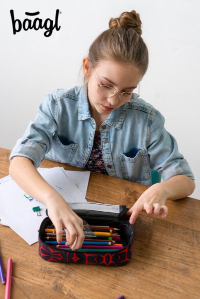 • Pevný školní penál s výklopnou vnitřní přepážkou.