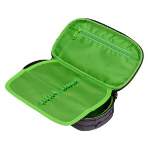 • Kompaktní penál na zip s prostornou hlavní komorou a dvojitou výklopnou chlopní nabízí dostatek prostoru pro psací potřeby i drobnosti.