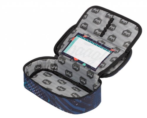 • Pevný penál na zip s dvojitou výklopnou chlopní a logem Baagl na přední straně.