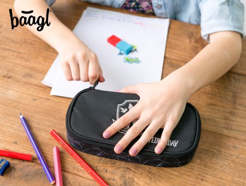 • Pevný školní penál s výklopnou vnitřní přepážkou.