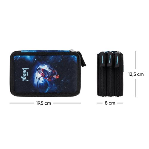 • Extra prostorný třípatrový penál na všechny psací potřeby. • Gumičky přizpůsobené i silným pastelkám a fixám. • Zesílený hřbet pro snadnější manipulaci při zavírání. • Spolehlivé značkové zipy YKK. …