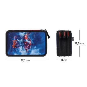 • Extra prostorný třípatrový penál na všechny psací potřeby.