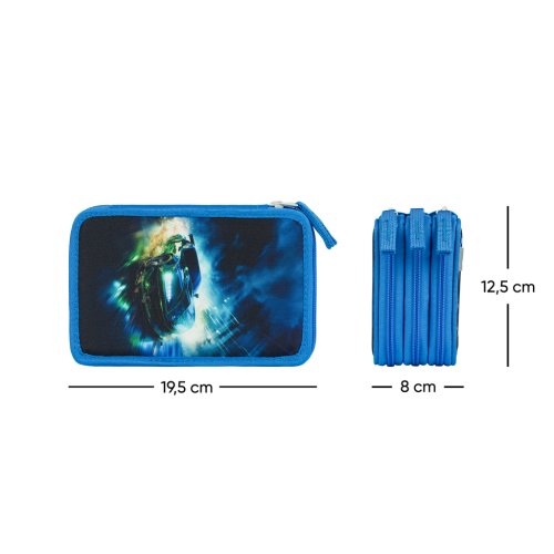 • Extra prostorné třípatrové penály na všechny psací potřeby.