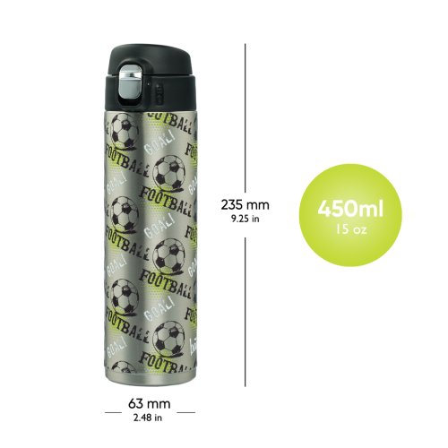 • Láhev s objemem 450 ml nabízíme v několika hravých designech, které lze sladit s další školní výbavou.
