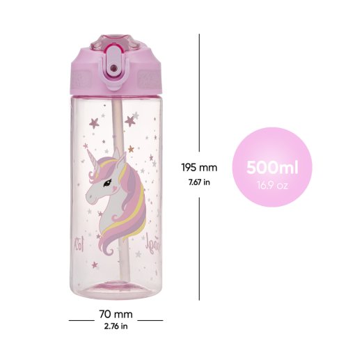 BAAGL Tritanová láhev na pití s brčkem Rainbow Unicorn 500 ml