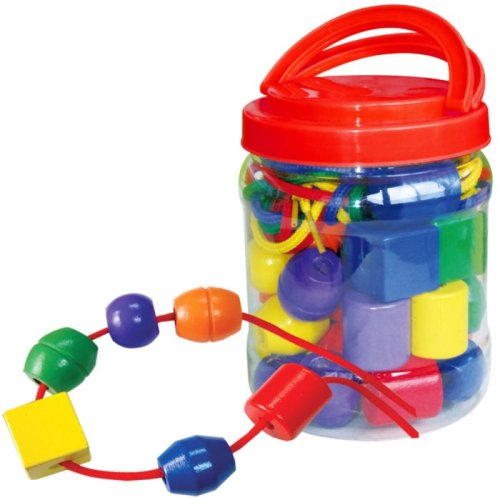 Velké dřevěné korálky ideální nejen pro rozvoj jemné motoriky, ale i pro rozpoznávání barev. V praktickém plastovém kyblíčku s víčkem a úchytkami pro snadné přenášení najdeš spoustu dřevěných korálků. Korále mají různý tvar, barvu i velikost. Dřevěné korále mohou děti navlékat na provázky (jsou součástí balení), nebo je třídit podle tvarů a barev. Mohou je také používat jako stavební materiál a stavět komíny, hrady nebo třeba zajímavé ohrady pro zvířátka. Obsah balení: 30 kusů korálků.
