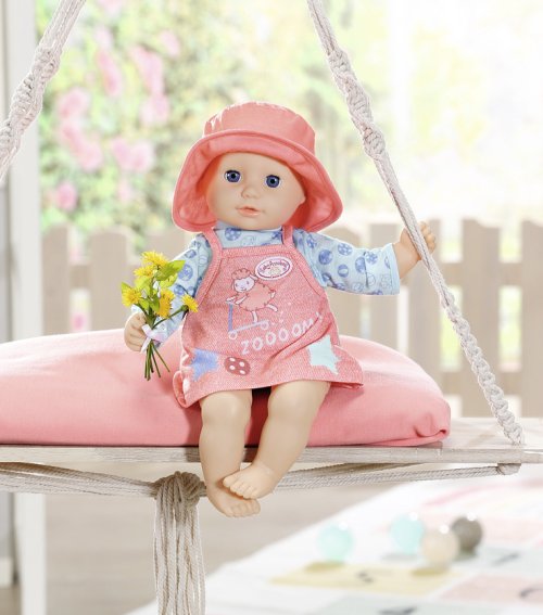 Baby Annabell Little si velmi ráda hraje na zahradě a ráda chodí do parku. Šatičky s dlouhými rukávy se dokonale hodí pro výlety na čerstvém vzduchu. Roztomilý klobouček chrání hlavičku panenky před sluncem. Souprava pro malé milovnice slunce je ušita ve střihu „easy fit“ a její převlékání hravě zvládnou i nejmenší ručičky. • Originální oblečení pro originální panenku Baby Annabell. • Ve střihu „easy fit“. • Hra s panenkou a příslušenstvím probouzí chuť ke hře s panenkou a podporuje rozvoj empatie a smyslu pro zodpovědnost u dětí od jednoho roku. Baby Annabell Little Šatičky pro miminko pro panenky velikosti 36 cm. Součásti jsou šatičky a klobouček proti slunci. Včetně ramínka.