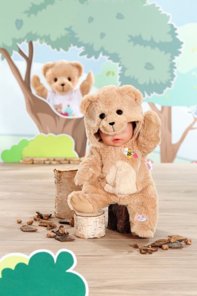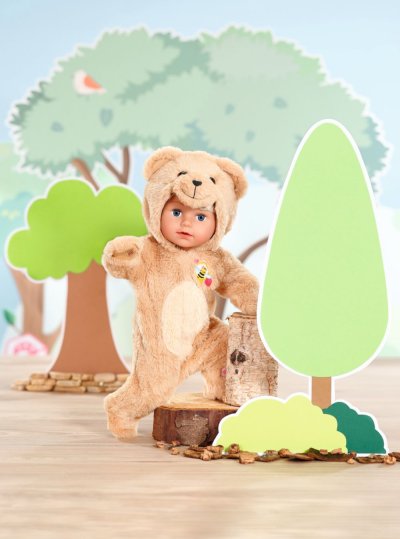 Je to medvídek BABY born? Ne, to je panenka BABY born. Ale ve svém medvídkovém overalu vypadá jako její nejlepší kamarád. V oblečku z příjemného materiálu s medvědí kapucí může s medvídkem Teddym řádit třeba v lese a společně s ním prozkoumávat jeho medvědí svět.