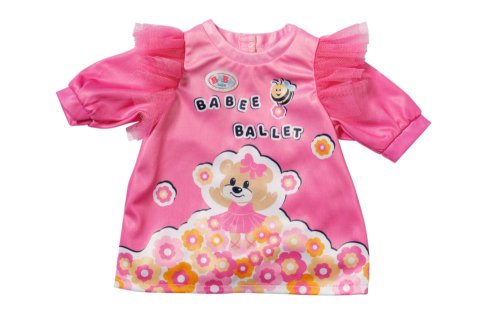 "Bzz, bzz, bzz… Věděli jste, že včeličky tančí před svými vchodovými dveřmi, aby svým pilným kamarádkám ukázaly cestu k nejlahodnějšímu nektaru a nejlepšímu květovému pylu? V růžových šatičkách nacvičuje i BABY born Little baletní taneček. Někdy u toho však vypadá trochu nešikovně, spíš jako tančící medvídek. Medvědí slečna na šatičkách je oblečena jako balerína, která tančí na květinové louce. Volánky na ramenou vypadají jako okvětní lístky. Šatičky jsou ušity ve stylu „easy fit“, takže převlékání hravě zvládnou i nejmenší ručičky.
