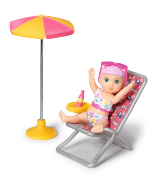 • Součástí je lehátko, slunečník, láhev a sluneční brýle pro panenku.