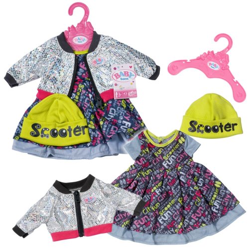 BABY born Oblečení na skútr pro panenky velikosti 43 cm. Součástí jsou šaty, bunda a čepice.