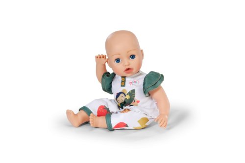 Z trička se zelenými volánkovými rukávy se na tebe usmívá roztomilá opička mezi dvěma banánovými listy. Kalhoty, které k tričku skvěle ladí, jsou potištěny obrázky různých druhů ovoce a kačenky Berty. • Sada trička a kalhot • Tričko i kalhoty jsou ozdobeny roztomilým potiskem opičky, kačenky Berty a ovoce • Tričko s knoflíky a volánkovými rukávy • Vhodné pro panenky velikosti 43 cm a pro medvídky BABY born Teddy • S ramínkem z recyklovaného materiálu • Kvalitní doplněk pro radost z nápadité, rozmanité a dlouhotrvající hry