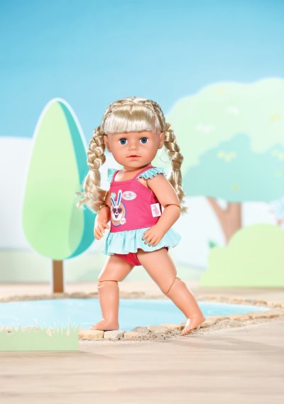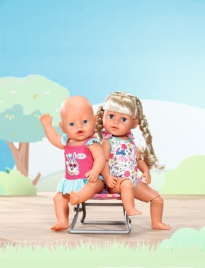 Vydejte se do studené vody - s barevnými plavkami si BABY born a Starší sestřička BABY born užijí ještě více zábavy při plavání v bazénu, v brouzdališti nebo u jezera.