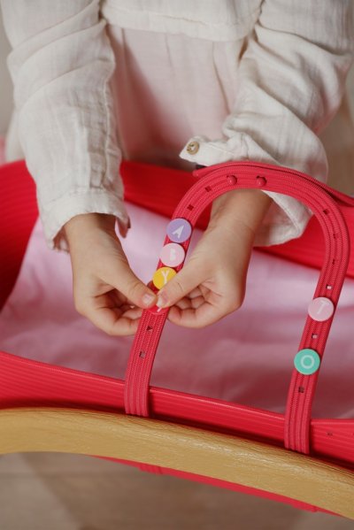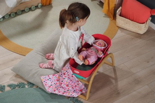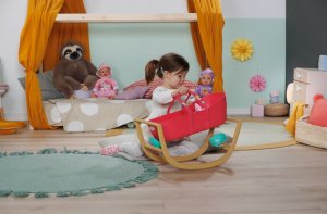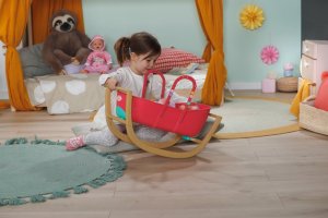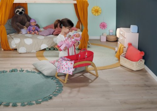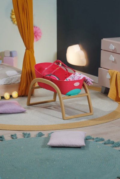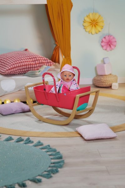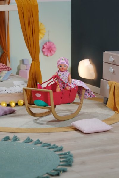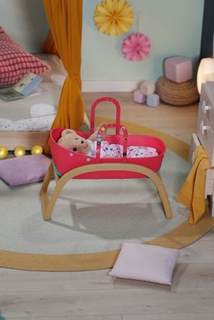 BABY born Postýlka 3 v 1 s nacvakávacími ozdobami. • Univerzální design 3 v 1: Postýlku lze v několika jednoduchých krocích snadno přeměnit na přenosný košík, kolébku nebo dětskou postýlku. • Kompletní sada lůžkovin: Měkký polštářek ve tvaru melounu, měkká přikrývka s motivy ovoce a matrace. • Sladké usínání: Díky stabilní konstrukci a jemnému houpání můžou panenky a plyšáci usínat jako v opravdové kolébce. • Kreativita: Pomocí barevných nacvakávacích ozdob, které lze připevnit na okraj košíku a na rukojeti, lze postýlku různě zdobit znovu a znovu.