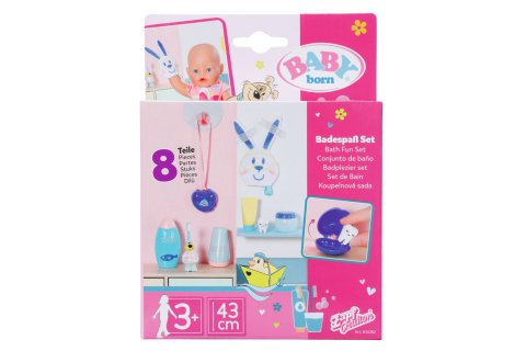 Panenka BABY born už ví, jak si čistit zoubky. A také přesně ví, jak důležité je pořádně se umývat i za ušima. Ve své koupelnové sadě najde vše, co je k mytí potřeba. Kartáček vypadá jako medvídek v kostýmu námořníka. Ke kartáčku patří žlutá tuba na zubní pastu. Bude ještě chvíli trvat, než BABY born vypadnou mléčné zoubky, ale třeba jí zoubková víla i tak něco přinese, když si pod polštář schová zoubek. Může ho ale schovat i do krabičky na vypadlé zoubky nebo do modré dózy. Sada obsahuje také žínku na mytí ve tvaru zajíčka, lahvičku na sprchový gel a tubu na krém. Kvalitní příslušenství pro značkovou panenku BABY born. Pro radost z nápadité, rozmanité a dlouhotrvající hry. BABY born Koupelnová sada pro hraní nejen ve vaně obsahuje 8 doplňků do koupelny. Rozměry balení 13x18x4 cm. Věk 3+