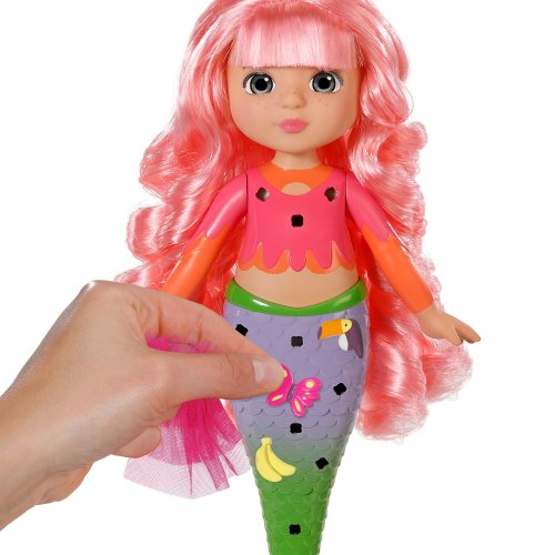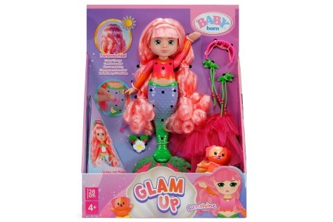 Vítejte ve světě BABY born Glam Up! Zde se vše točí kolem kreativity, třpytu a nekonečných možností tvoření. Glam Up mořské víly zvou děti, aby rozvíjely svou fantazii a každý detail upravovaly podle vlastního vkusu. Pokaždé jinak a originálně. Mořská víla Sunshine miluje proměny a hraní si s barvami. Od hlavy až po ploutev ji lze česat, zdobit a dekorovat podle vlastního stylu. Díky přiloženým textilním doplňkům, barevným nacvakávacím ozdobám a roztomilému zvířátku s odnímatelnou ploutví vznikají pokaždé nové vzhledy. Přiložená brožurka inspiruje k dalším nápadům i s materiály, které mají děti doma. Obzvlášť kouzelné jsou dlouhé růžové vlasy Sunshine, které na slunci mění barvu a přinášejí skutečný wow efekt. Ať už jde o třpytivé účesy, kreativní dekorace nebo hry plné fantazie s BABY born Glam Up Sunshine objevují děti nekonečné možnosti tvoření a mohou nechat svou kreativitu volně plynout. Rozměry balení 24x32x10 cm. Věk 4+