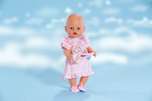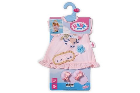 S touto roztomilou sadou noční košilky je panenka připravena na krásný spánek. Měkká noční košilka s volánkovými detaily na lemu a rukávech. Pohodlné bačkůrky a maska na spaní dokonale doplňují outfit. Nezbytná sada pro sladké sny. Věk 3+
