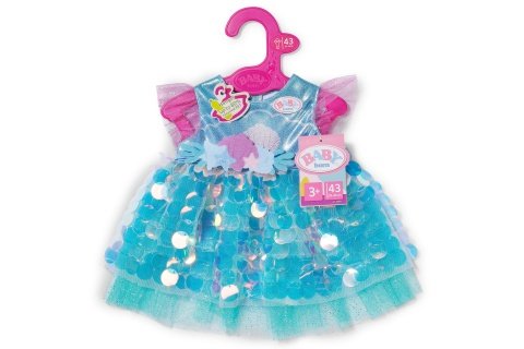 S BABY born šatičkami mořské panny začínají kouzelná podvodní dobrodružství. Třpytivé flitrové šaty a čelenka s mušličkami promění panenku v zářivou mořskou vílu. Děti se mohou ponořit do příběhů plných fantazie, lesku, přátelství a kouzel. Vhodné pro panenky velikosti 43 cm a pro BABY born medvídky. Věk 3+