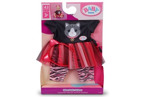 Pozor, milovníci kočiček! Kočičí outfit BABY born kombinuje roztomilost se stylovým provedením. Šatičky s tylovou sukýnkou, kalhoty a čelenka s oušky promění každé hraní v krásný zážitek. Tento outfit inspiruje k tvořivým hrám a příběhům. Vhodné pro panenky velikosti 43 cm i pro BABY born medvídky. Věk 3+