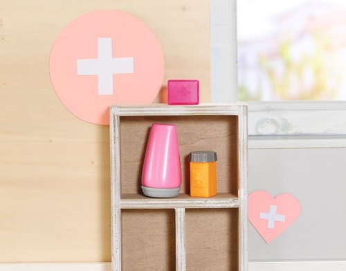 Zcela profesionálně jako opravdový záchranář si hned nasazuje růžovou roušku. Pak z tašky vytáhne vše, co potřebuje k ošetření rozbitého kolene panenky BABY born. Tubu s mastí a obvaz, který nůžkami ještě trochu upraví. Jakmile BABY born spatří krabičku s léky a lžičku s medicínou, vykulí oči. Léky ale zatím naštěstí nepotřebuje. Bratříček záchranář chce raději ještě změřit teplotu. Malá kaskadérka ji má z rozrušení trochu zvýšenou. Třeba by se ohřívací láhev mohla změnit na chladicí polštářek. Poté bratříček všech 9 zdravotních pomůcek schová zpět do látkového sáčku, který zdobí obrázek zdravotní kačenky Berty.
