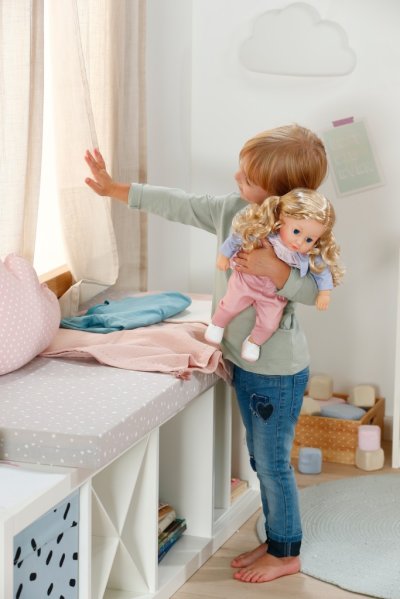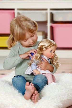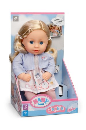 Sophia má krásné dlouhé vlasy vyrobené z kvalitního nylonu, které jsou ideální pro kreativní a stylové účesy. Ať už je to hravý cop nebo elegantní culík. S jejími vlasy neexistují žádné hranice pro vaši fantazii. Je to perfektní kamarádka pro malé stylistky, které chtějí svou panenku stále znovu a znovu česat. Když ji po hraní uložíte, zavře oči a díky měkkému tělíčku se s ní můžete mazlit. Všechny doplňky od BABY born ve velikosti 36 cm jí skvěle sedí. • Má měkké tělíčko na mazlení • Mrkací oči • Kvalitní vlasy pro vytváření účesů • Oblečení – šaty s kabátkem, legíny a boty • Vhodné pro děti od 1 roku