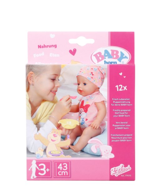 Sada 12ti sáčků se speciální stravou pro panenku BABY born. Stačí lehce zamíchat s vodou dle návodu a oblíbená kašička pro BABY born je hotová!