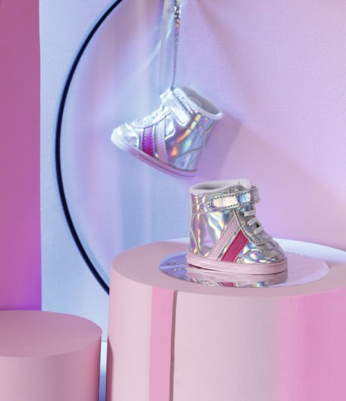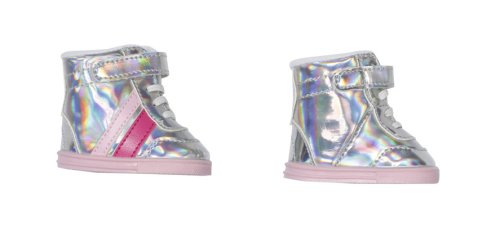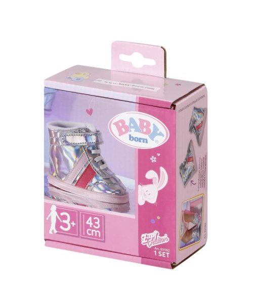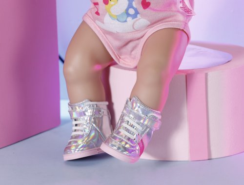 BABY born si libuje v těch nejskvělejších botičkách. Vysoké holografické boty září již z dálky. Módní tenisky jsou po stranách ozdobeny pruhy ve světle a tmavě růžové barvě. Po důkladném zavázání a zpevnění suchými zipy v nich může BABY born běžet třeba až na konec světa.